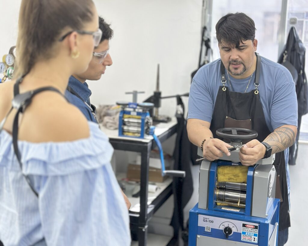 e aprendi muito desde o primeiro dia com os mestres Michel e Sr Marino que nos ensinam todas as técnicas da ourivesaria para fabricação e reparos de jóias, recomendo e indico o curso para quem quiser aprender sem rodeios e fazer a primeira jóia no primeiro dia de aula,